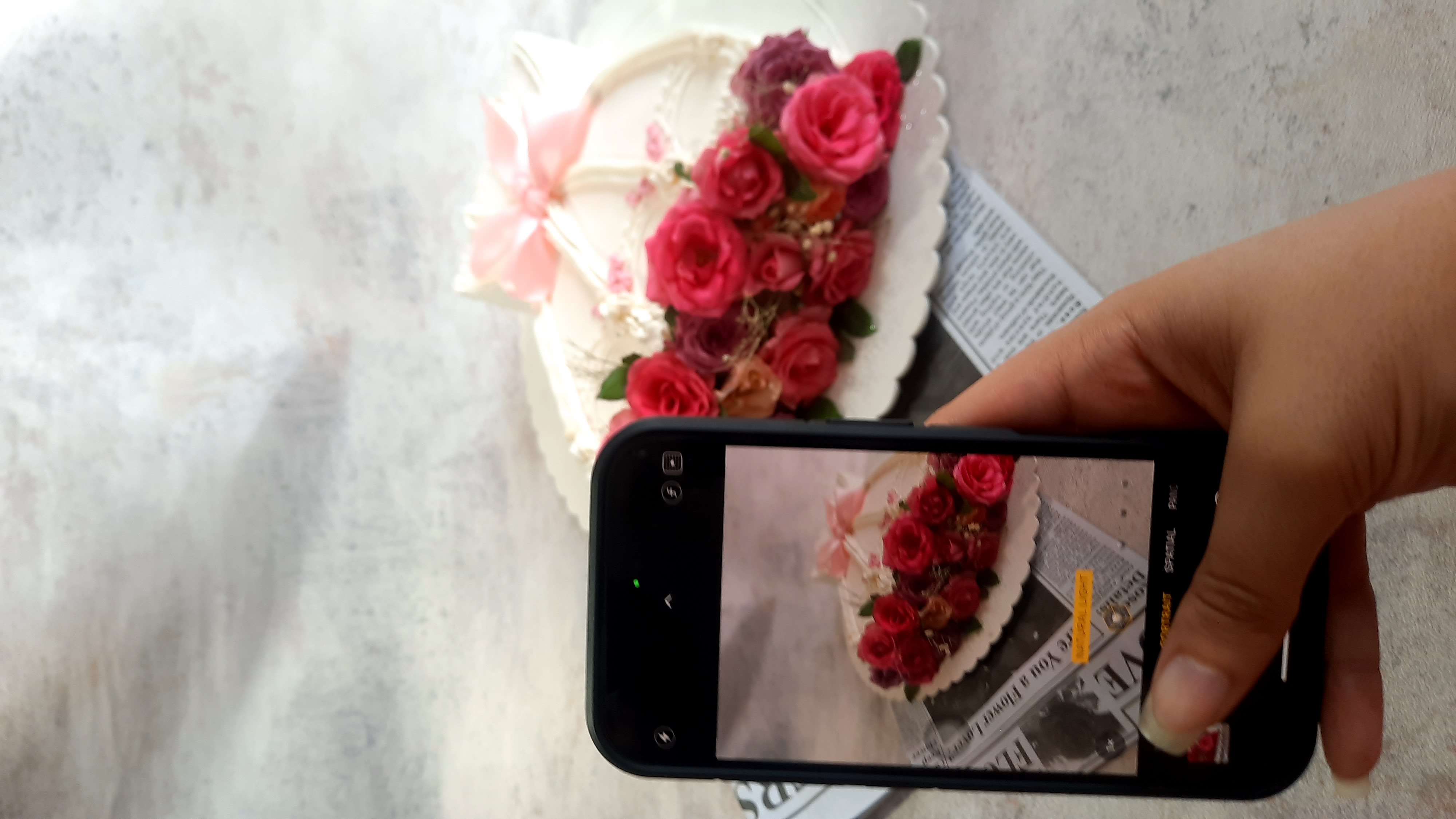 کیک وانیلی دسته گل روز مادر با خامه شکلاتی