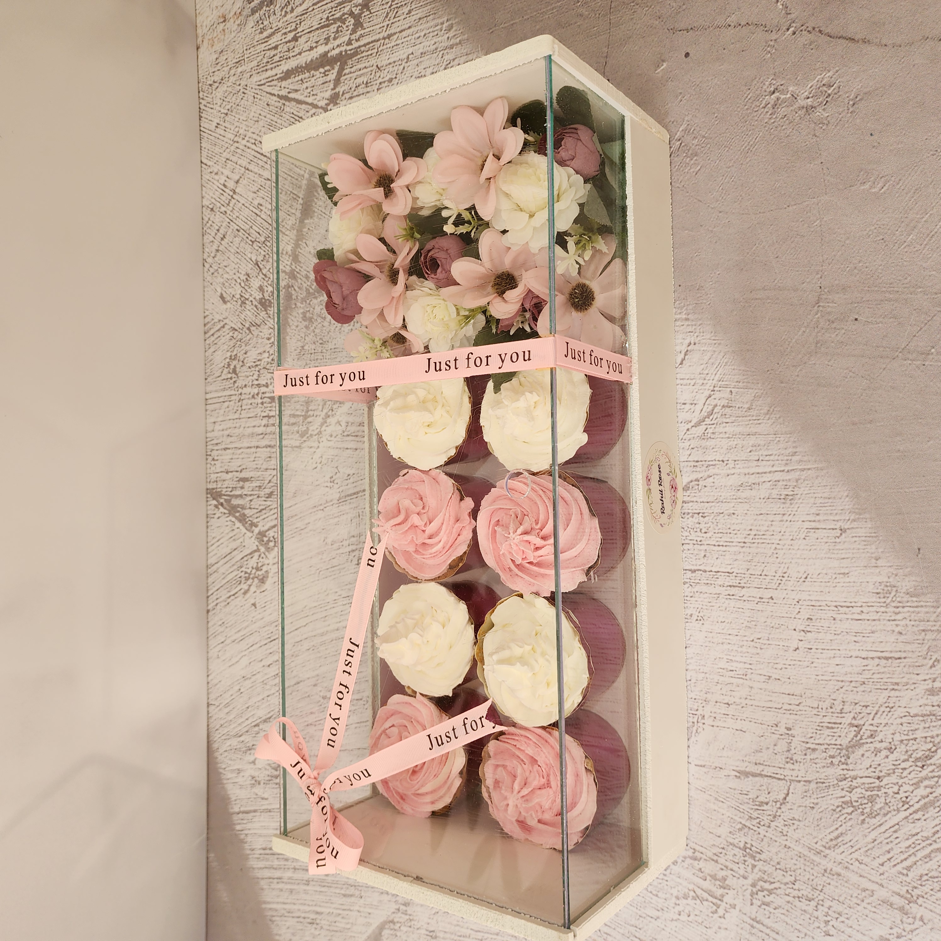 کاپ کیک وانیلی و شکلاتی تعداد10عدد با باکس گل