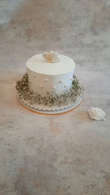 کیک عروس خامه سفید وزن 1کیلو ونیم با مروارید وگل عروس