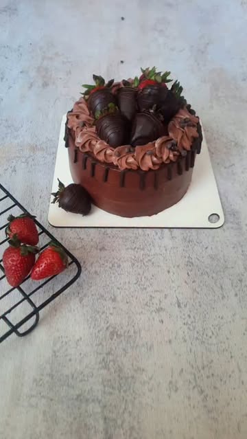 کیک شکلاتی و توت فرنگی باخامه شکلاتی وزن 1کیلو ونیم