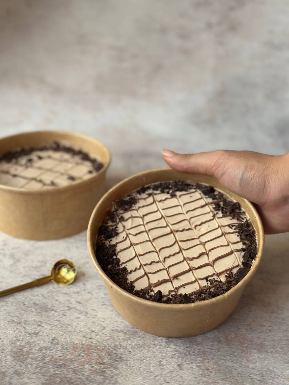 کیک کاسه ای کرافت شکلاتی و وانیلی با روکش خامه نسکافه وزن 200گرم کپی