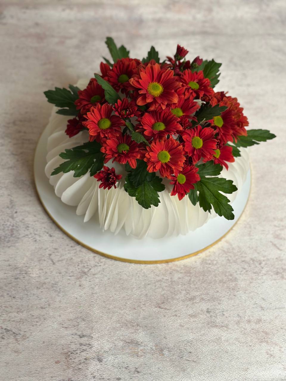 کیک دسته گل وزن 2کیلو کیک وانیلی با خامه وزن تقریبی 2کیلو وگل طبیعی